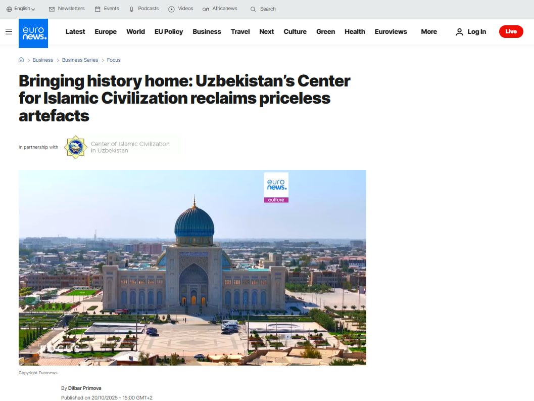 EURONEWS: “The Center for Islamic Civilization in Uzbekistan is repatriating priceless artifacts”
