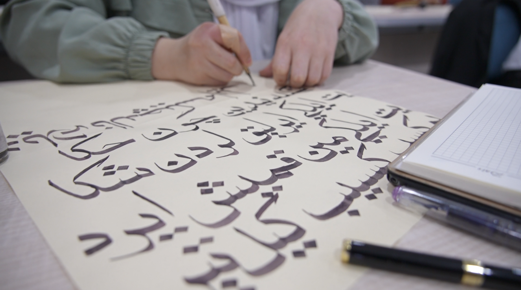 During the conversation, the instructors spoke to the students about the history of calligraphy, various writing styles, and their spiritual meanings. The students also had the opportunity to witness practical calligraphy demonstrations.