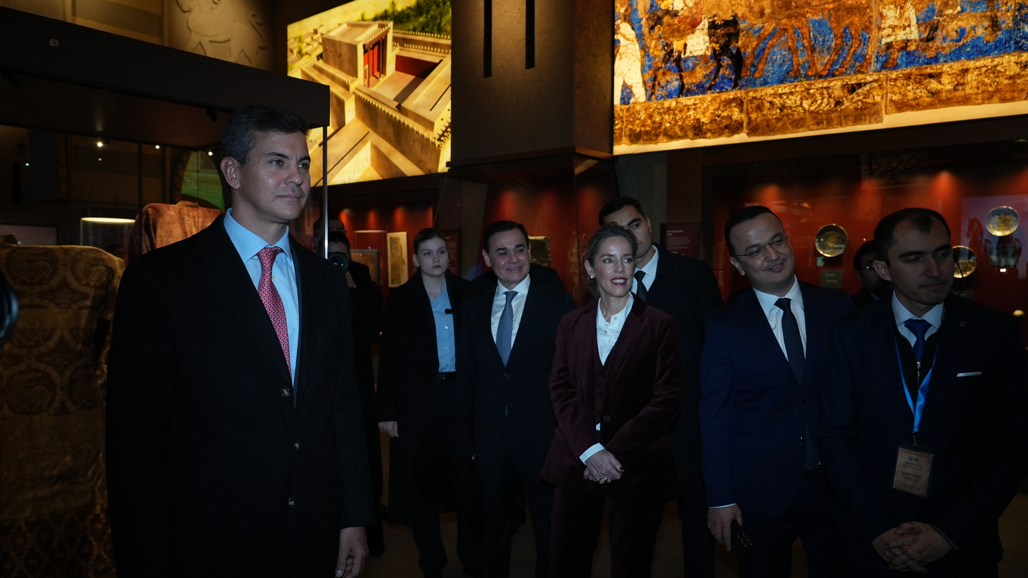 Члены делегации Президента Парагвая осмотрели экспозиции «Доисламские цивилизации», «Первый Ренессанс», «Второй Ренессанс» и «Новый Узбекистан – основа Нового Ренессанса». Особое впечатление произвели материалы, посвящённые вкладу Имама аль-Бухари, Имама ат-Термизи, Абу Мансура аль-Матуриди, Бахауддина Накшбанда и других выдающихся мыслителей в развитие мировой науки и культуры. Также были представлены редкие рукописи, артефакты и исторические источники эпох Саманидов, Караханидов, Хорезмшахов и Тимуридов.