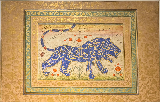 В уникальной каллиграмме конца XVII века буквы словно оживают и складываются в образ могучего тигра. Сегодня это произведение представлено в Центре исламской цивилизации в Узбекистане, наглядно демонстрируя, как в исламском каллиграфическом искусстве текст, образ и символ образуют единую эстетическую систему.