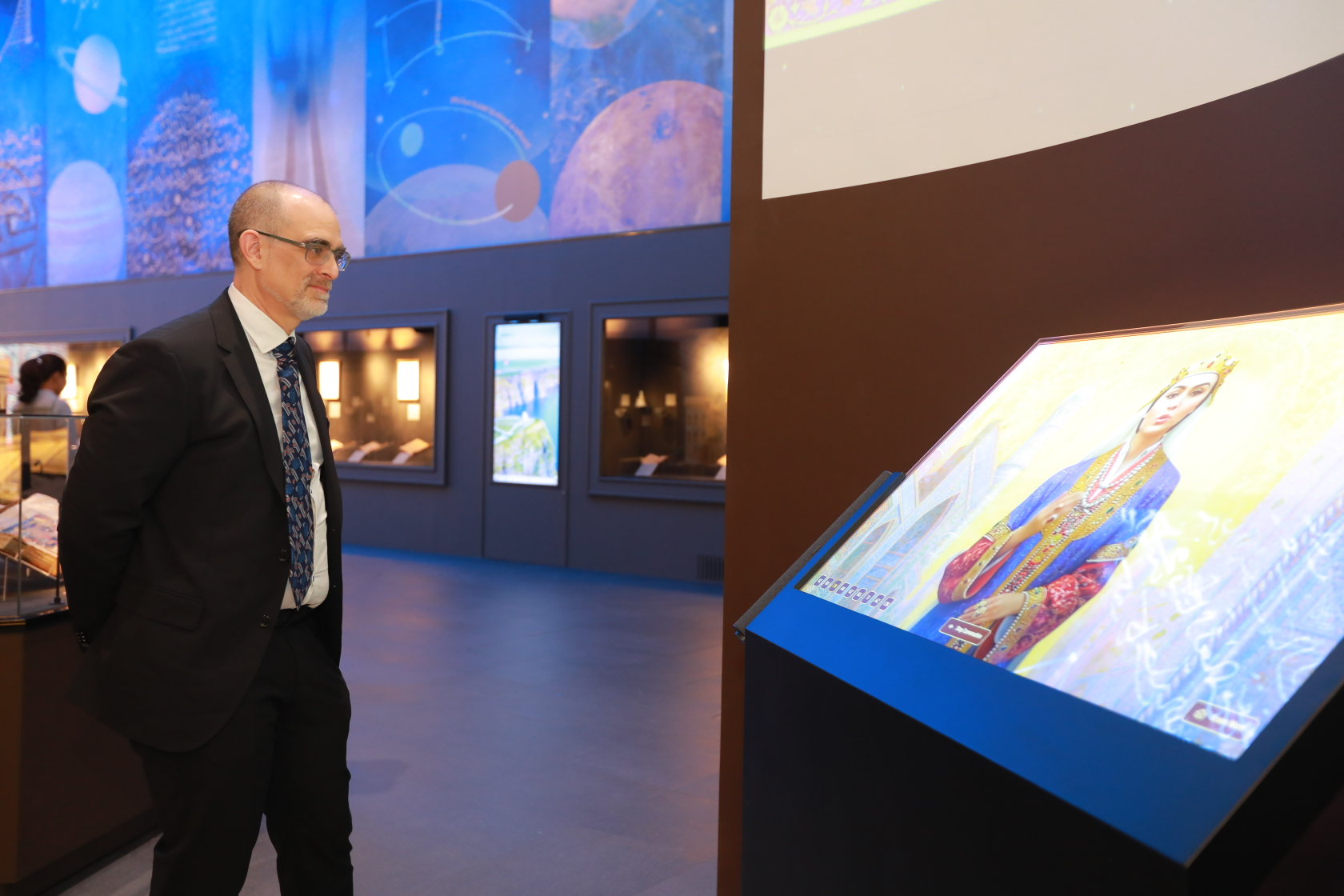 Ключевым моментом визита стала экспозиция, посвящённая Абу Али ибн Сине, представленная в разделе Первого Ренессанса. Здесь он раскрывается не только как историческая фигура, а как феномен научной и медицинской мысли, сохраняющий актуальность на протяжении веков. Особое внимание гостей привлекло то, как его идеи в области медицины и философии раскрыты с использованием современных визуальных и интерактивных решений.