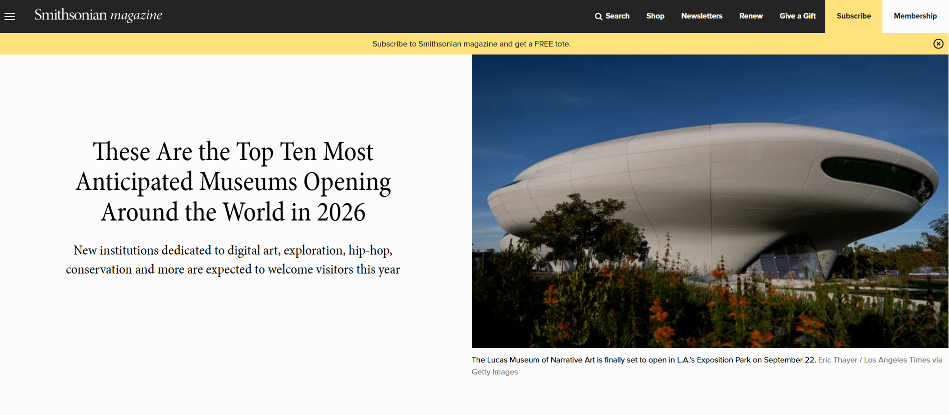 Центр исламской цивилизации в Ташкенте вошёл в число 10 самых ожидаемых музеев мира 2026 года по версии Smithsonian Magazine — официального издания Смитсоновского института (США), одного из крупнейших музейно-исследовательских комплексов мира. Основанный в 1970 году, журнал является авторитетным международным научно-популярным изданием, широко цитируемым в сфере науки, истории, культуры и музейного дела. Включение проектов в его рейтинги рассматривается как знак высокой экспертной оценки на глобальном уровне.