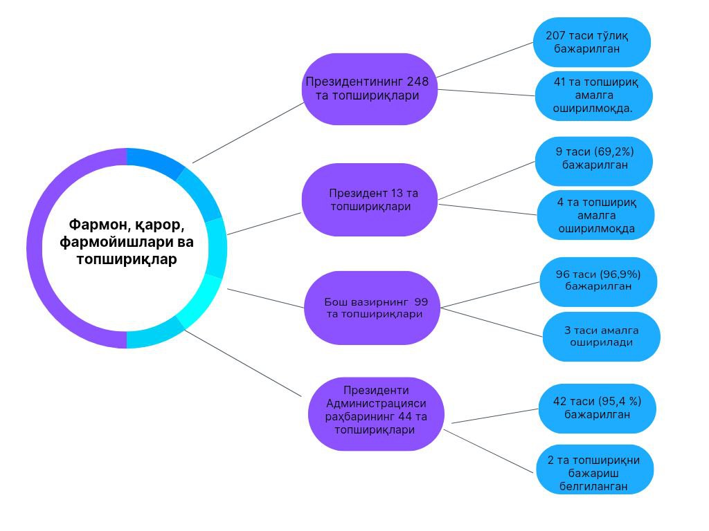 Qonunchilik hujjatlar va topshiriqlari ijrosi taʼminlanmoqda