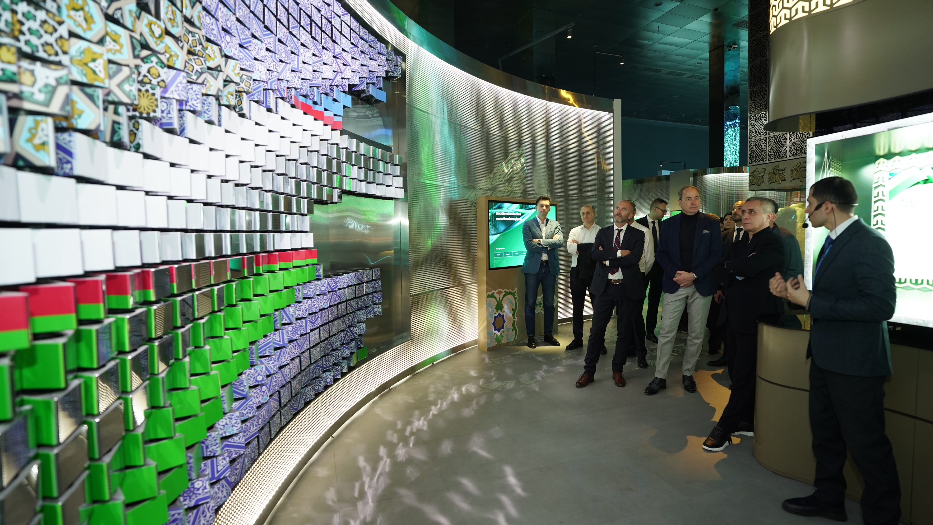 Delegatsiya safari Markazning Shon-sharaf zalidan boshlandi. Bu yerda joylashgan 14 ta ravoqdagi mikromozaika usulida ishlangan monumental kompozitsiyalar mehmonlarda katta taassurot qoldirdi. Ushbu asarlarda Markaziy Osiyo tarixidagi buyuk shaxslar va sivilizatsion rivojlanish ramziy obrazlar orqali ifodalangan.