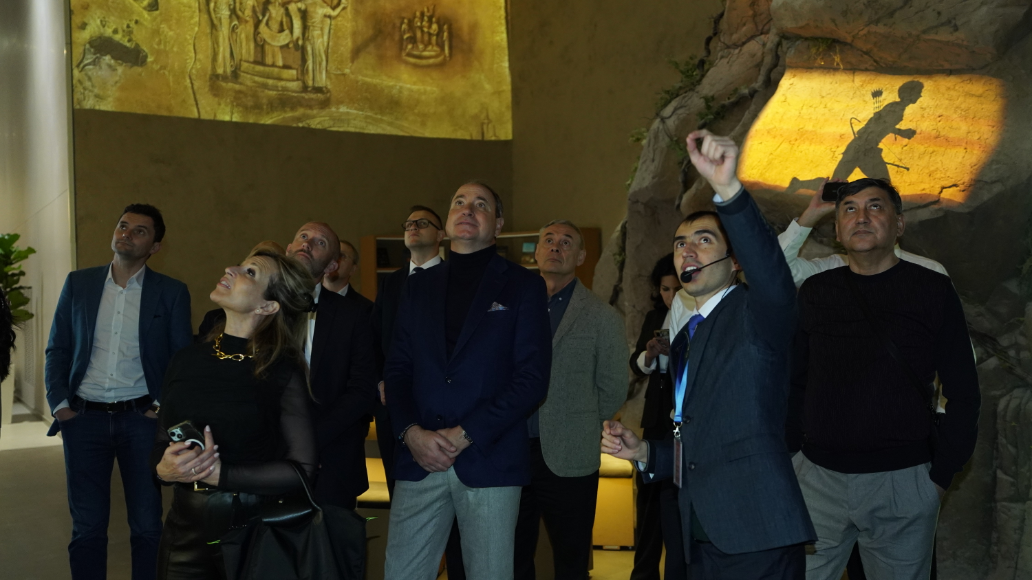 Delegatsiya safari Markazning Shon-sharaf zalidan boshlandi. Bu yerda joylashgan 14 ta ravoqdagi mikromozaika usulida ishlangan monumental kompozitsiyalar mehmonlarda katta taassurot qoldirdi. Ushbu asarlarda Markaziy Osiyo tarixidagi buyuk shaxslar va sivilizatsion rivojlanish ramziy obrazlar orqali ifodalangan.